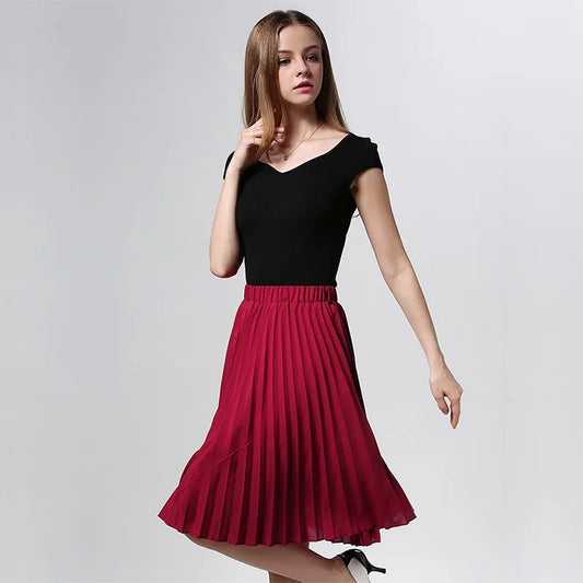Pleated Chiffon Knee-Length Skirt