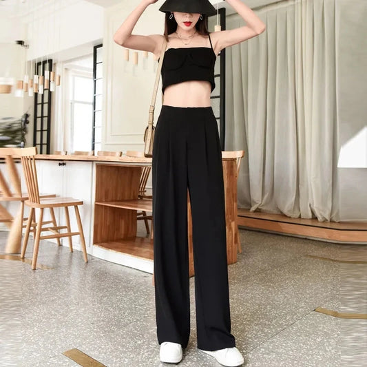 Lightweight Chiffon Pleated Wide-Leg Trousers